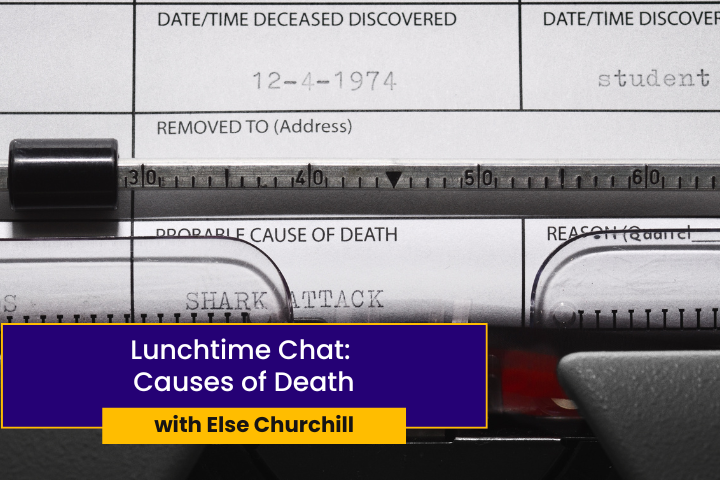 SoG Genealogist, Else Churchill, is waiting to welcome you to our virtual common room to discuss how, when and why our ancestors died. Bring along your own collection of death certificates especially any with intriguing, illegible or baffling causes of death.