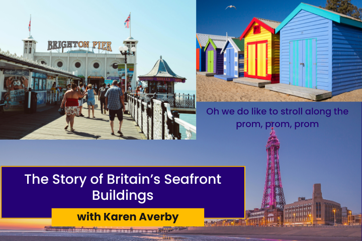 This illustrated talk explores the rich history of Britain’s seafront buildings, from fashionable Georgian resorts to modern day seasides, looking at the buildings that have helped shape our coastal landscapes, from function to leisure…sometimes iconic, sometimes controversial, but always fascinating. Seafronts and their buildings are integral to the development of the seaside, and are where history, architecture, and leisure converge, influenced by changing architectural trends, cultural shifts, and the ever-evolving nature of coastal life. This talk is perfect for lovers of seaside architecture, history and heritage, and and anyone with ancestors who may have enjoyed a leisurely seafront stroll!